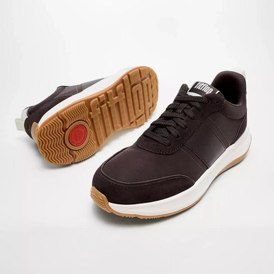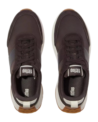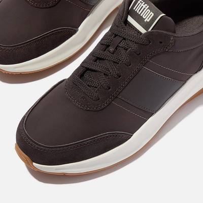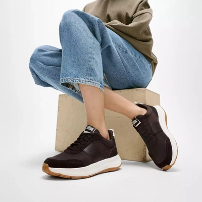 Baskets FitFlop Femme F-Mode Flow Sneaker Nylon Suede Mix Chocolate Brown/Cream